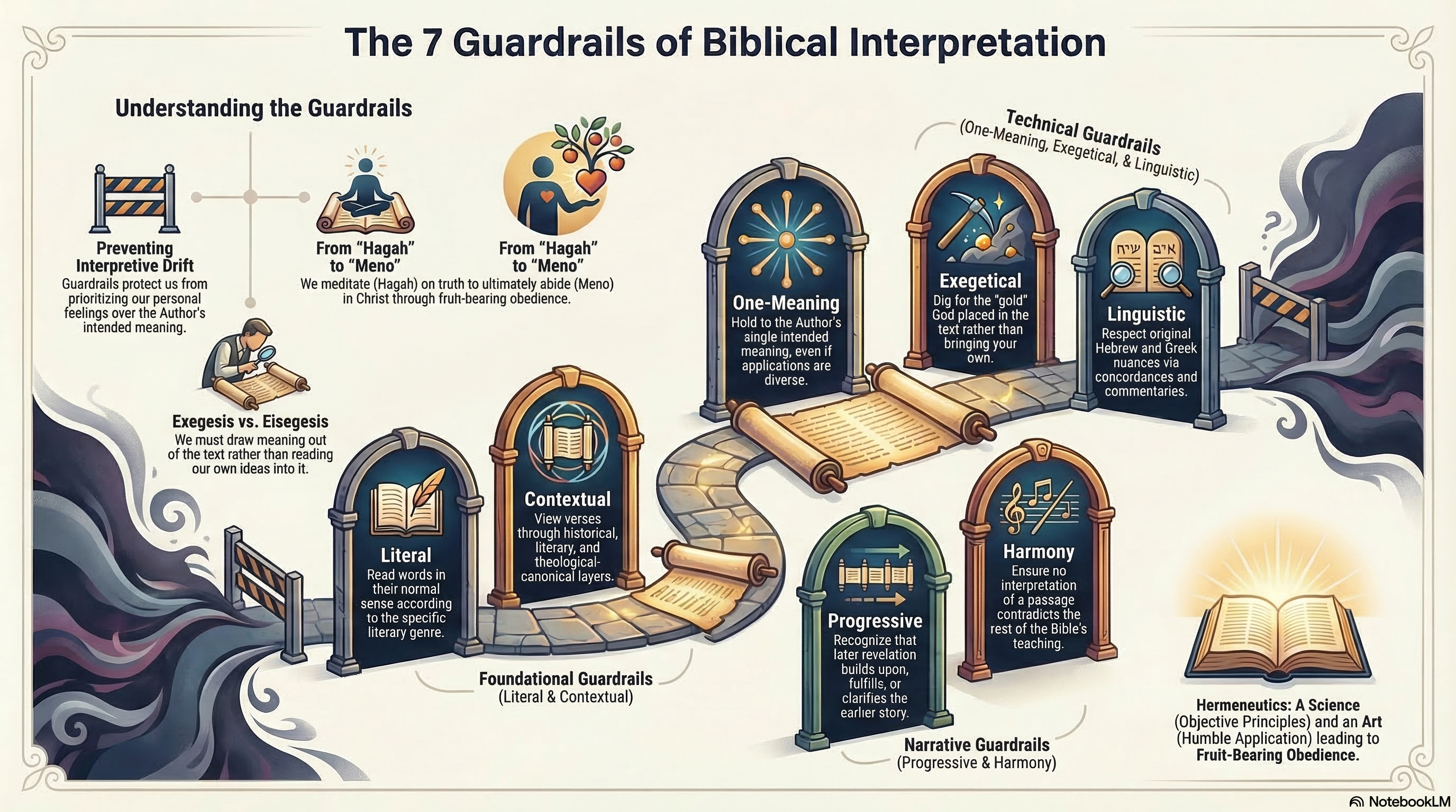 Scripture does not bend to our private readings. It has a meaning placed there by its Author, and our calling is to receive that meaning faithfully, not to create it. These guardrails are the principles that protect us in that effort, helping us distinguish between what God is saying and what we are projecting.