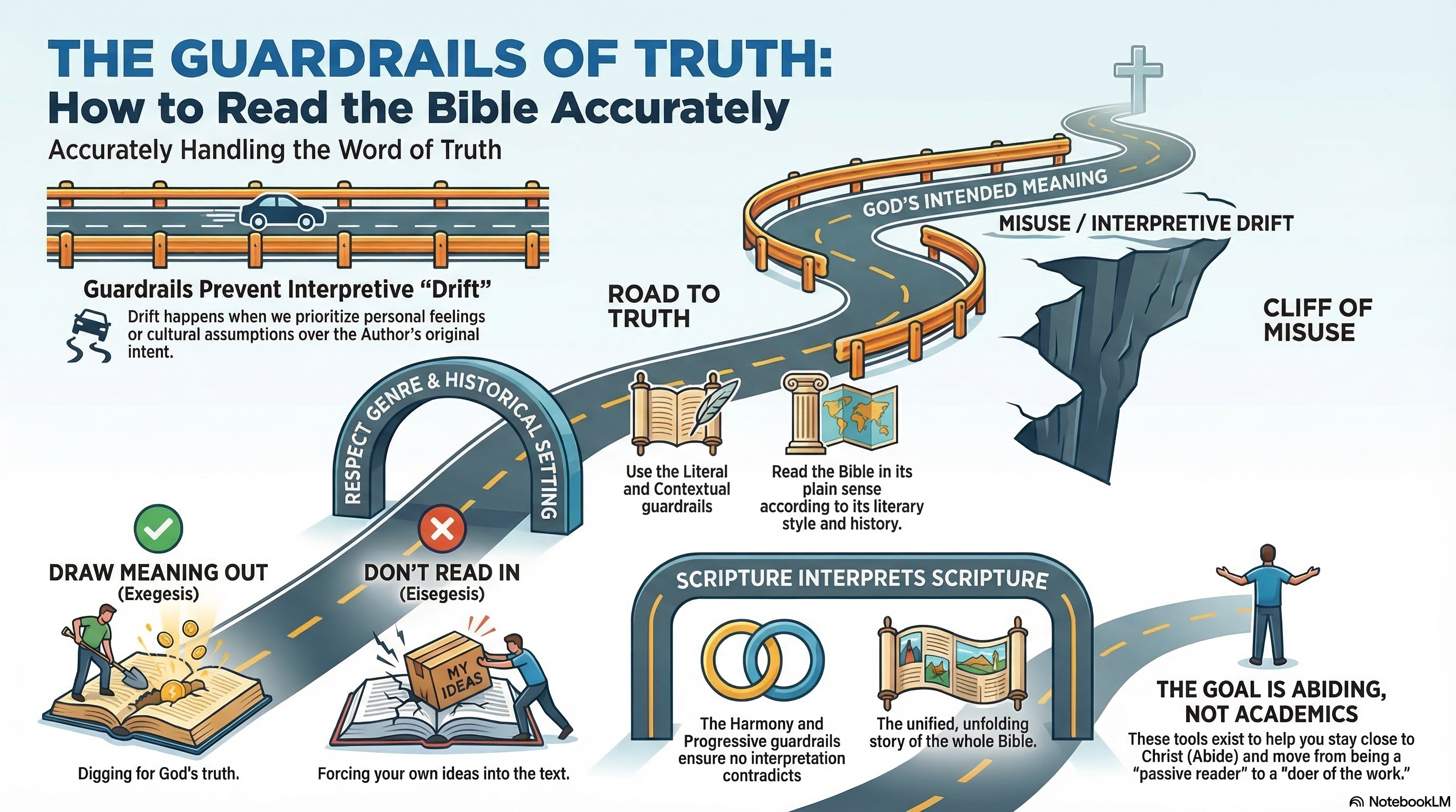 Seven principles that protect how we read God's Word, keeping us on the road to sound interpretation and off the cliff of misuse.