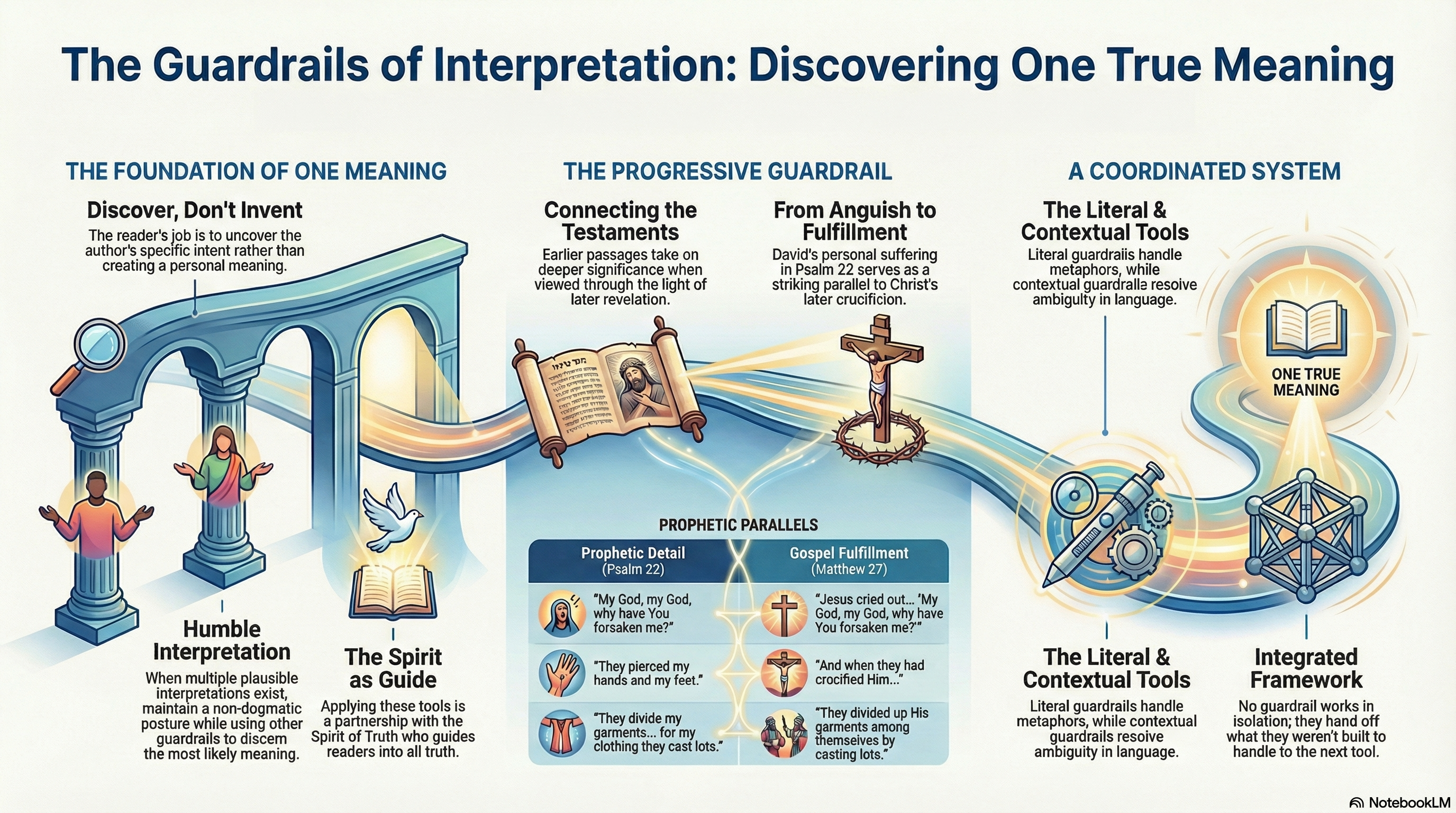 • The Progressive Guardrail (coming soon) will teach us how God's unfolding story illuminates earlier passages, explaining connections like the one between Psalm 22 and the crucifixion.