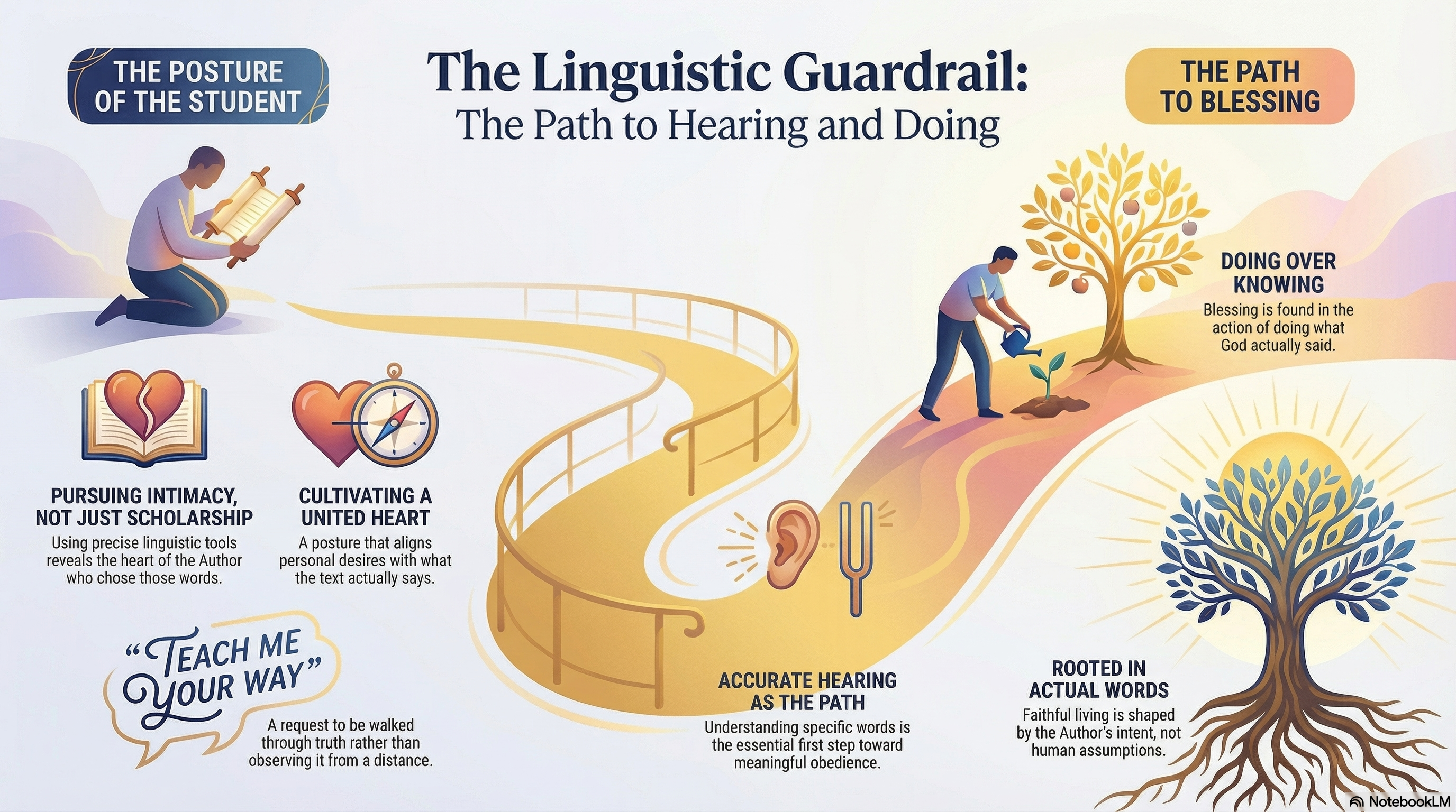 Knowing is not enough. Doing is the destination. But doing what God actually said, rather than what we assumed He said, is the path to the blessing Jesus promises here. The Linguistic Guardrail keeps our doing faithful: rooted in the actual words, shaped by what the Author intended, walked out in the confidence that comes from hearing clearly.