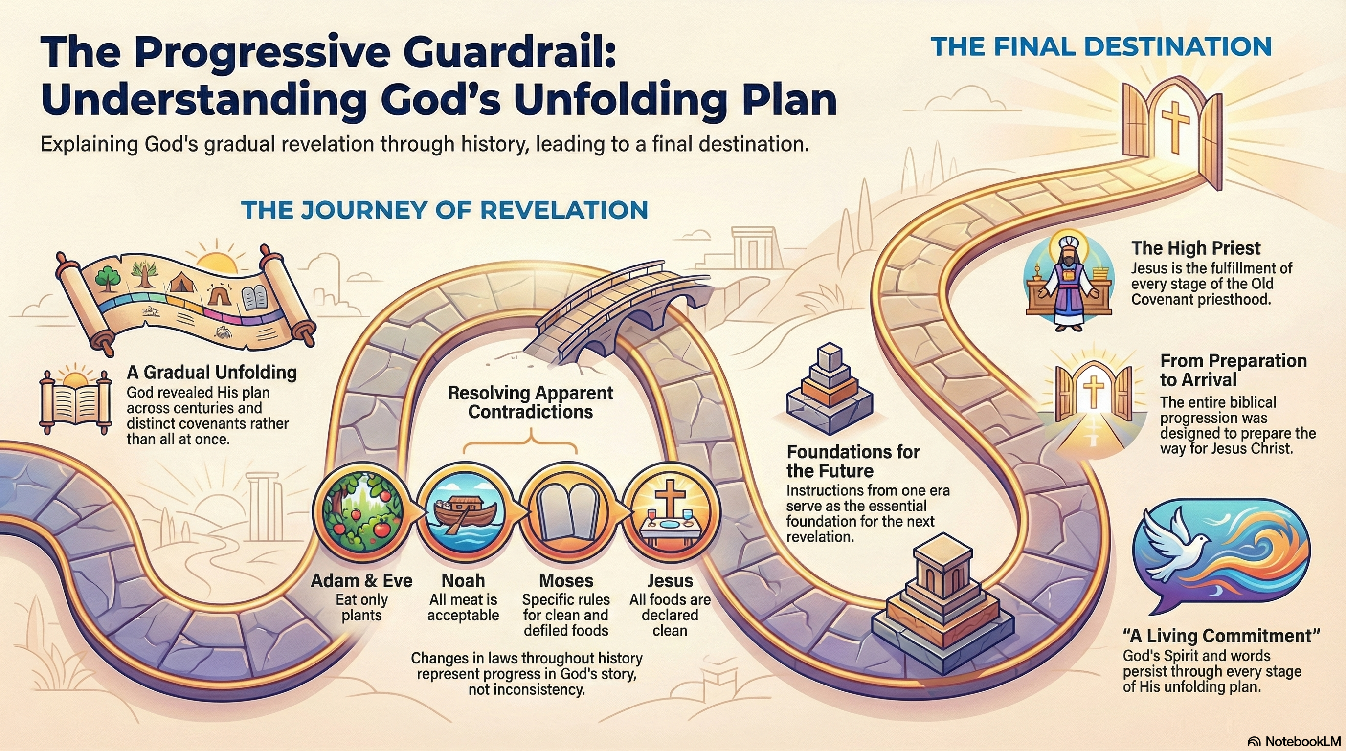 God's plan did not arrive all at once, but His faithfulness did. The words He placed in the mouths of His people across every era were never random; they were one continuous covenant, building toward the great High Priest who fulfilled them all. The Progressive Guardrail is what lets us see the whole story instead of just isolated chapters.