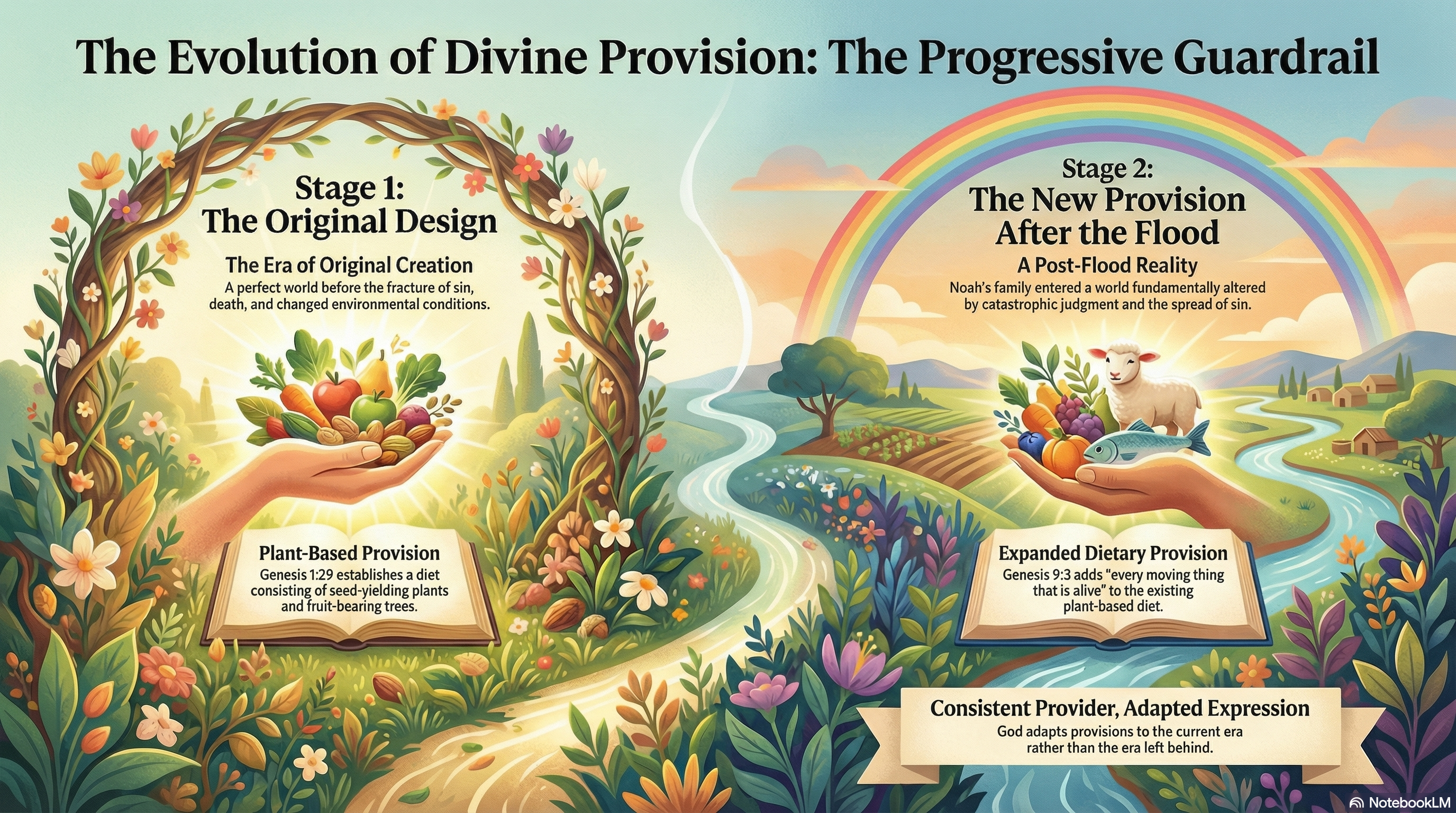 Genesis 9:3 is not a contradiction of Genesis 1:29. It is an expansion: the same generous God, adapting His provision to a world that has changed. The Progressive Guardrail protects us from treating this as inconsistency and helps us see it as exactly what it is: faithful provision for the actual era God's people are living in.