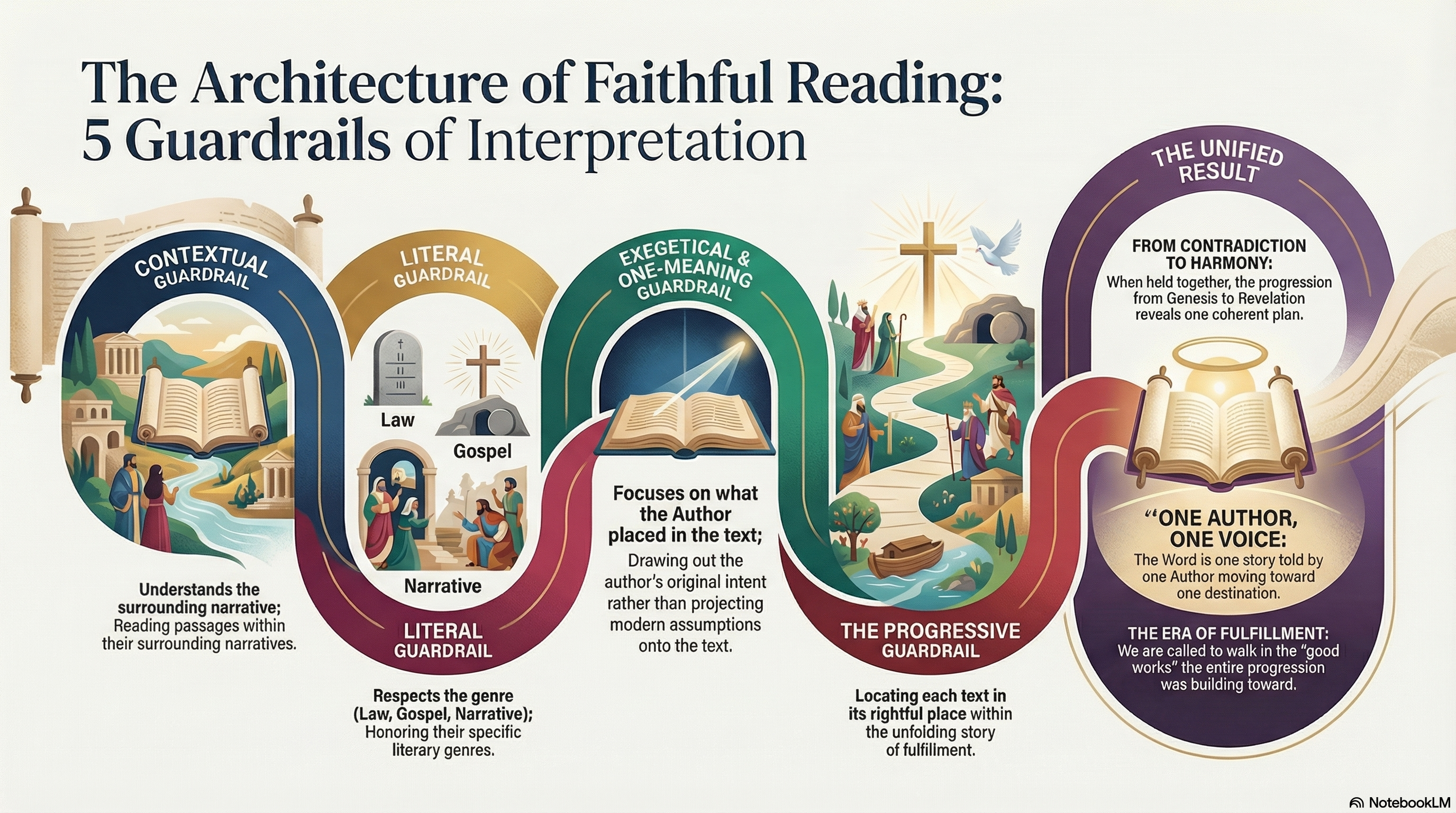 This is the architecture of faithful reading: not a single tool applied in isolation, but a community of guardrails working together, each protecting the reader from a different angle of error, and all of them confirming the same unified story.