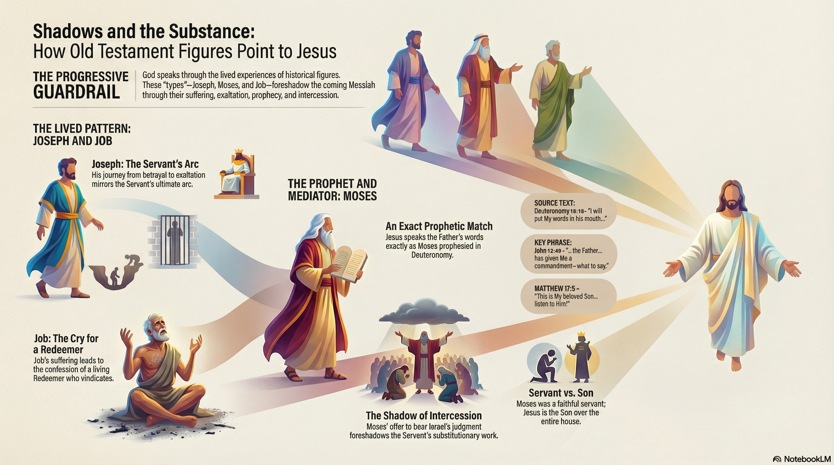 The Progressive Guardrail teaches us that God is not only speaking through propositions and promises, He is also speaking through lives. He raises up men and women whose stories bear the unmistakable shape of the One who is coming. Theologians call these figures types, persons whose historical experience foreshadows the greater reality to come. Watch how this works.