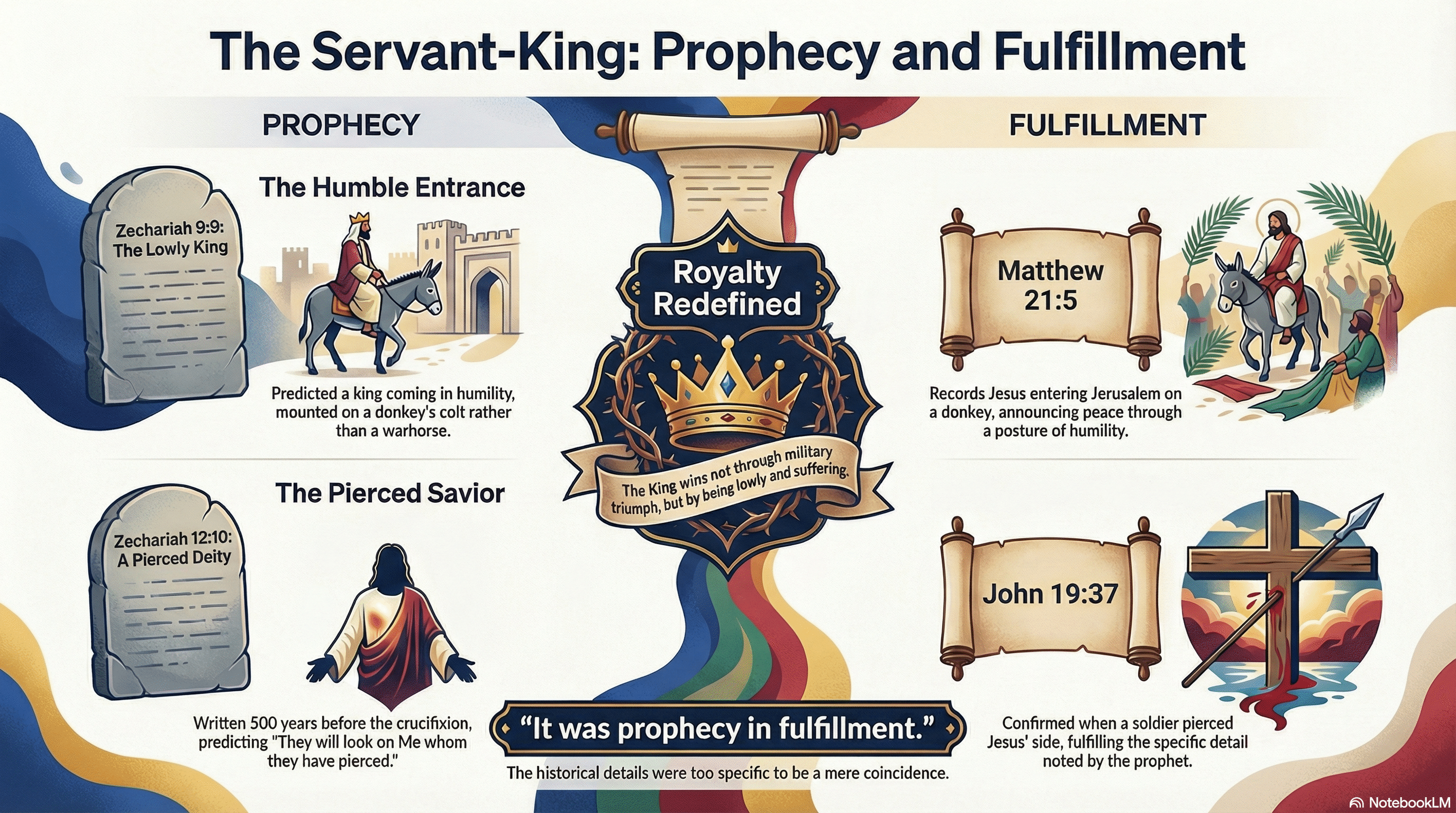 Zechariah 9:9 | Matthew 21:5 | Zechariah 12:10 | John 19:37