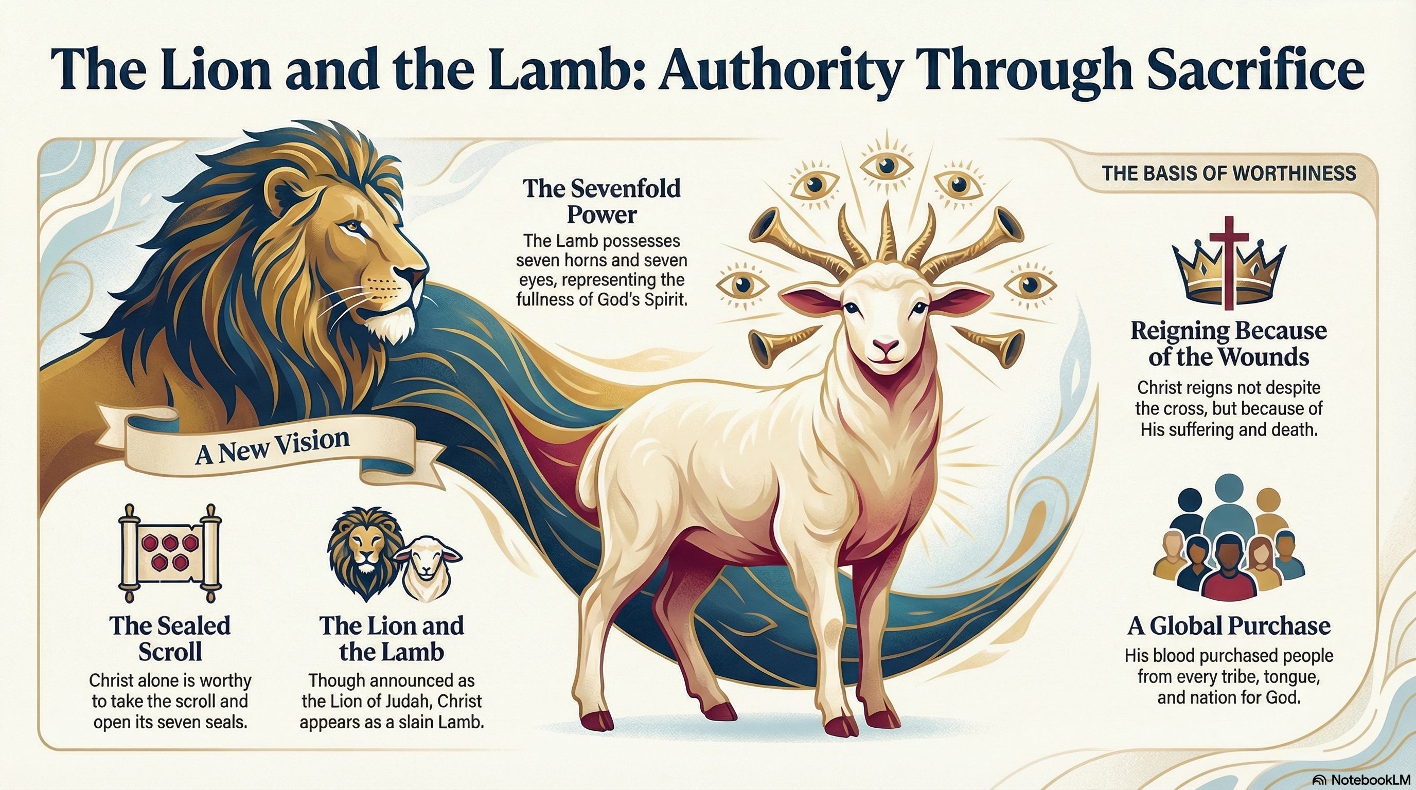 He is told to look for a Lion. He sees a Lamb, standing as if slain. Still bearing the marks. Still carrying the evidence of the cross. Not despite the cross, but because of it, He holds all authority, all power, and all dominion.