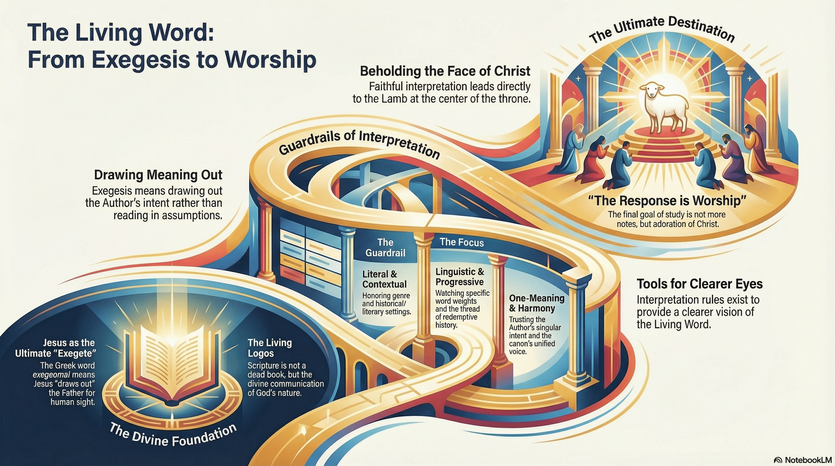 That word gave us our mission: become better interpreters (exegetes) of the written Word so that we might behold the face of the Living Word. Every guardrail you have learned has been in service of that one aim. Not a better method. Not a more impressive hermeneutic. A face.